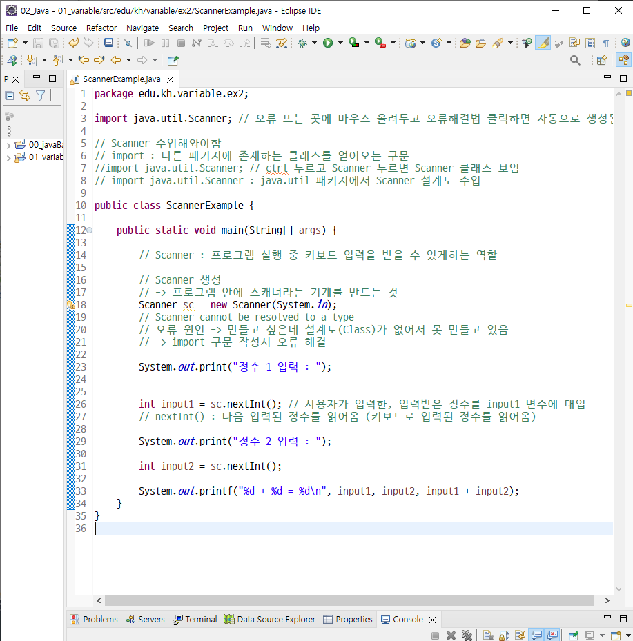 new Scanner(System.in); 객체를 생성하는 구문