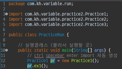 실행클래스에서 메서드 불러오기