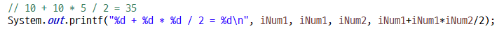정해져 있는 형식에 맞춰서 그 형식에 맞는 값(변수)을 줄바꿈 하지 않고 출력