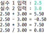 -> 두 실수를 입력받아 사칙연산 결과를 모두 출력