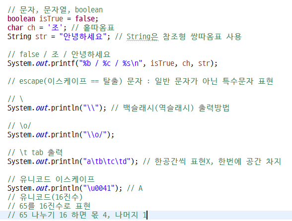 %c : 문자, %s : 문자열