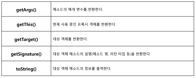 JoinPoint는 Spring AOP 혹은 AspectJ에서 AOP의 부가기능을 지닌 코드가 적용되는 지점을 뜻하며, 모든 어드바이스는 org.aspectj.lang.JoinPoint 타입의 파라미터를 어드바이스 메소드의 첫 번째 매개변수로 선언해야 한다.