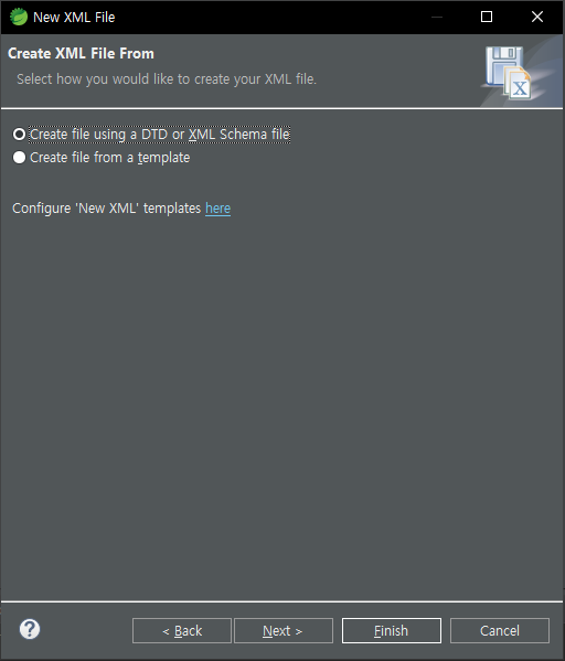 DTD 설정 중 하나 불러서 xml 파일 만들 수 있음