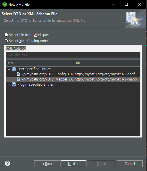 Location에 http://mybatis.org/dtd/mybatis-3-config.dtd