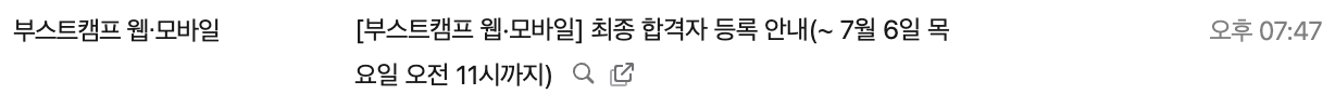 그런데 아니나 다를까 부스트캠프에서 한 메일이 와있었다..