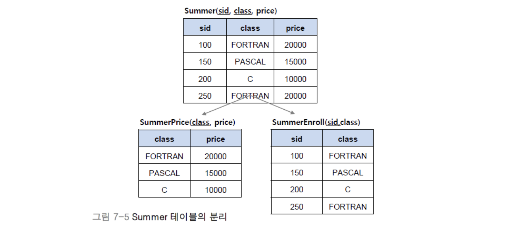 이상현상을 제거하기 위해서는 위의 자료들처럼 릴레이션을 분리해야 함