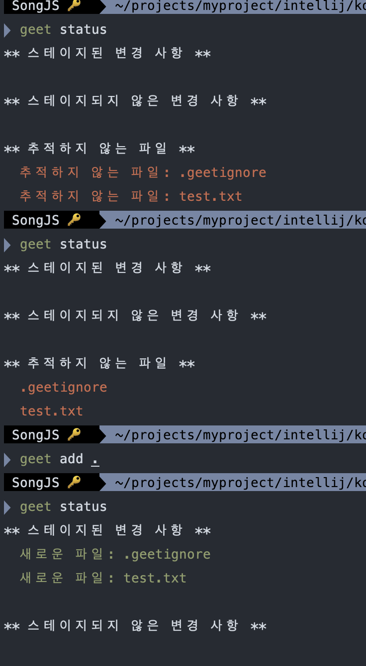 when (true) { // 각 조건에 따라 추적하지 않는 파일 / 스테이지되지 않는 파일(수정 또는 삭제) 추가