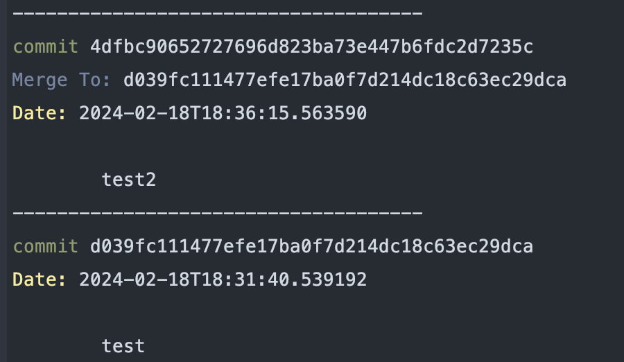 log 명령어도 여러 옵션이 있지만 git 자체에 대해 학습을 하는 내용은 아니라서 그냥 기본 형식으로 출력하기로 함