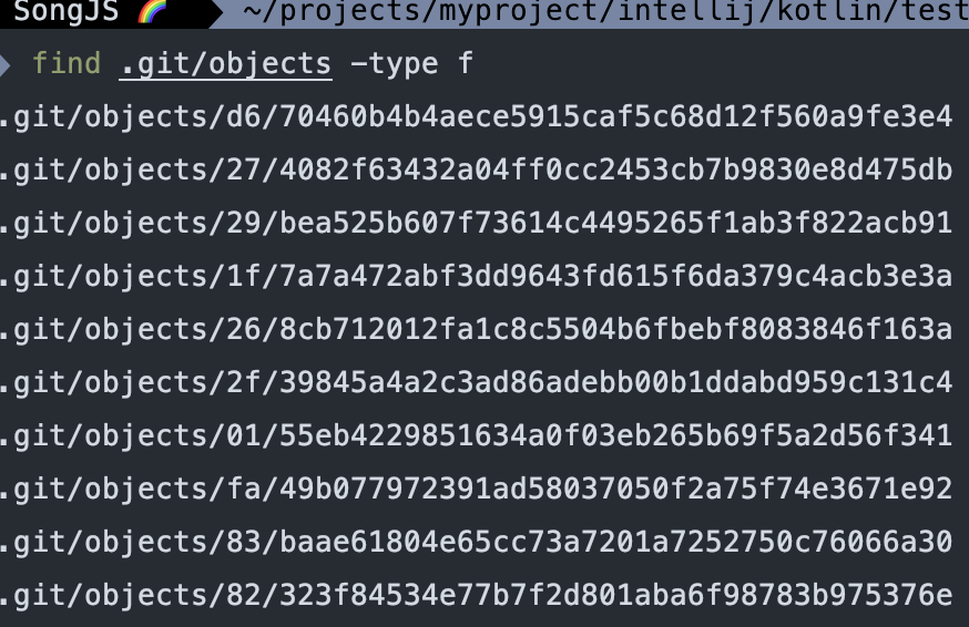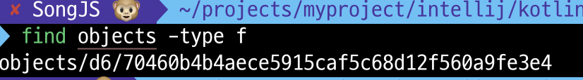 find 명령어로 파일을 찾아보니 objects 디렉토리에 파일이 하나 생성됨