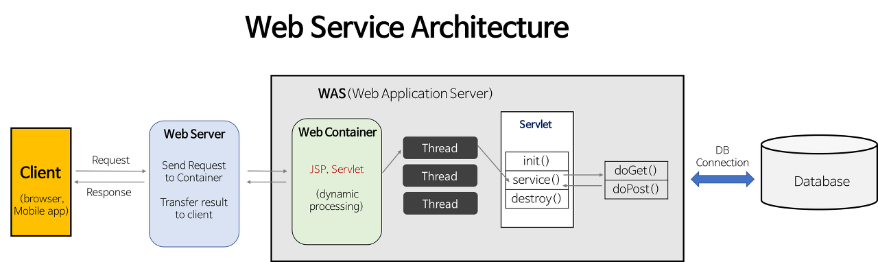 이중, [Client(사용자) - 웹서버 - WAS - DB]의 작동 흐름을 살펴보겠다.