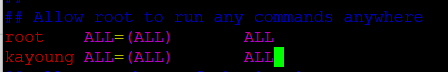 vi /etc/ssh/sshd_config : 유저명 추가하고 ALL 권한 주기