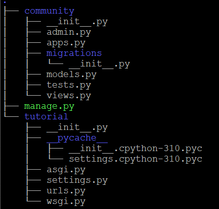 이후에 ls 해보면 db.sqlite3가 나와야 한다.
