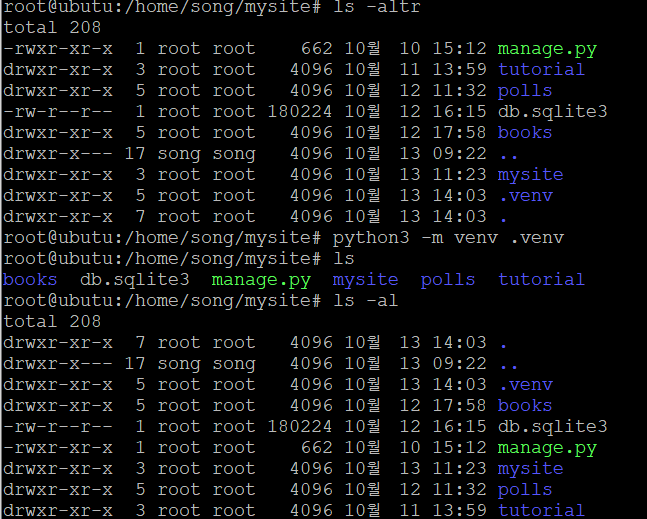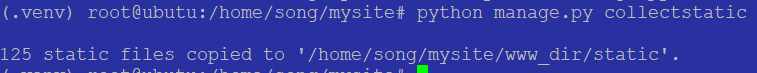 cd /home/song/mysite로 이동(가상환경이나 혹은 root에서 실행, django project를 만든 경로에서 진행해야 한다.)python manage.py collectstatic