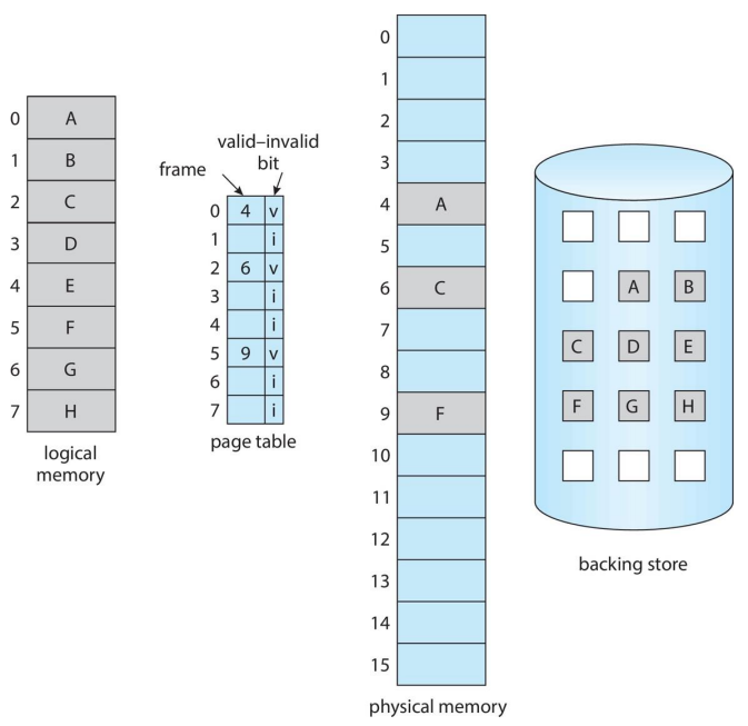 주소 변환 중 valid-invalid bit가 i면 page fault임을 의미함