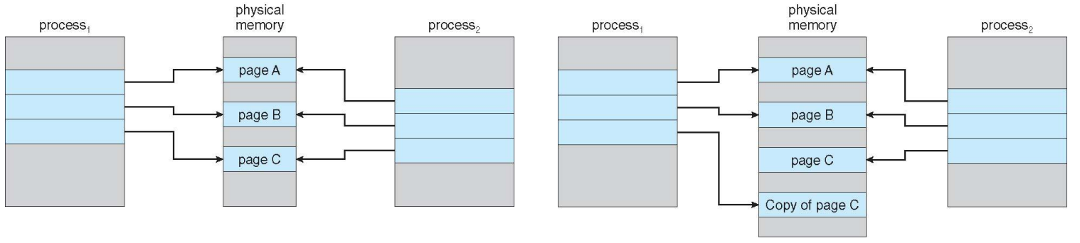 두 프로세스 중 하나가 공유 페이지를 수정하면 페이지 복사