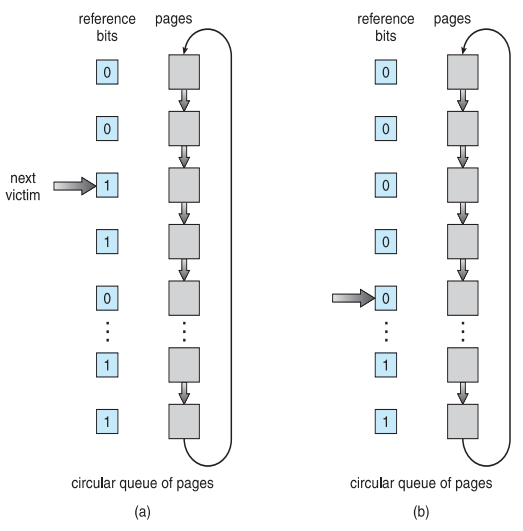0이면 그냥 교체하고 1이면 비트를 0으로 바꾸고 한 번 더 기회를 줌