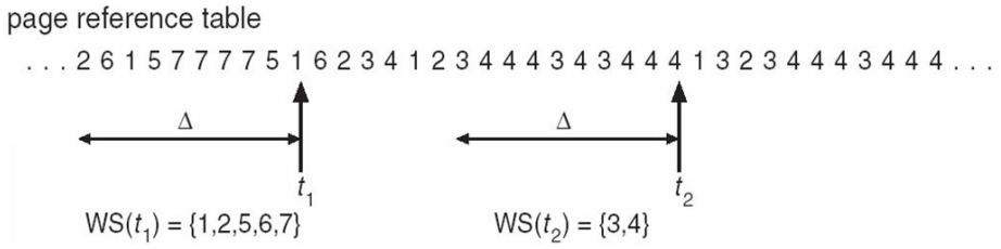 WSSi(Working Set Size of Process Pi) : 최근 Δ에서 참조된 page 개수