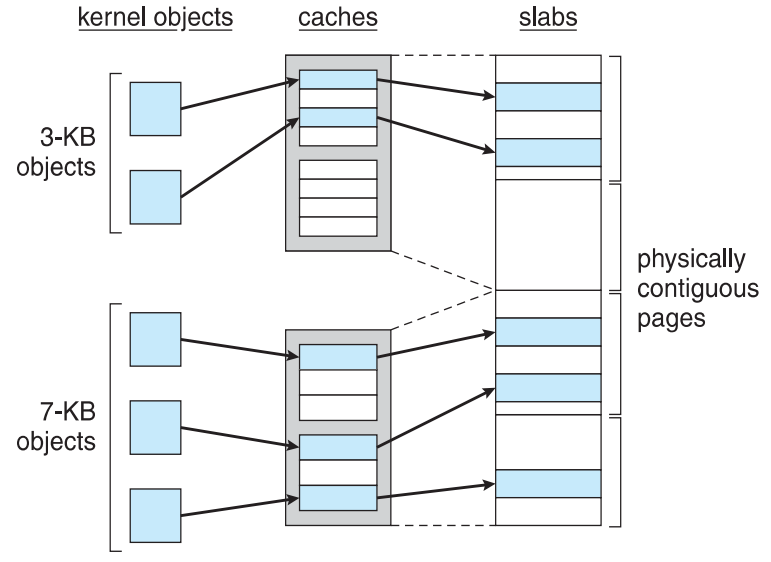보통 free-memory pool에서 할당을 받고 다양한 사이즈의 구조를 메모리에 요청함