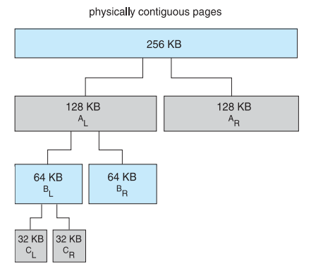 physical contiguous page로 구성된 fixed-size segment로부터 메모리를 할당함
