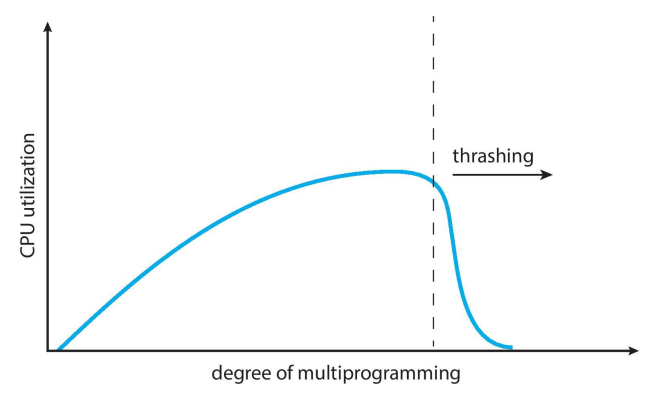 thrashing이 일어나는이유? -> process가 필요한 메모리 크기가 총 메모리 사이즈보다 커서 그럼