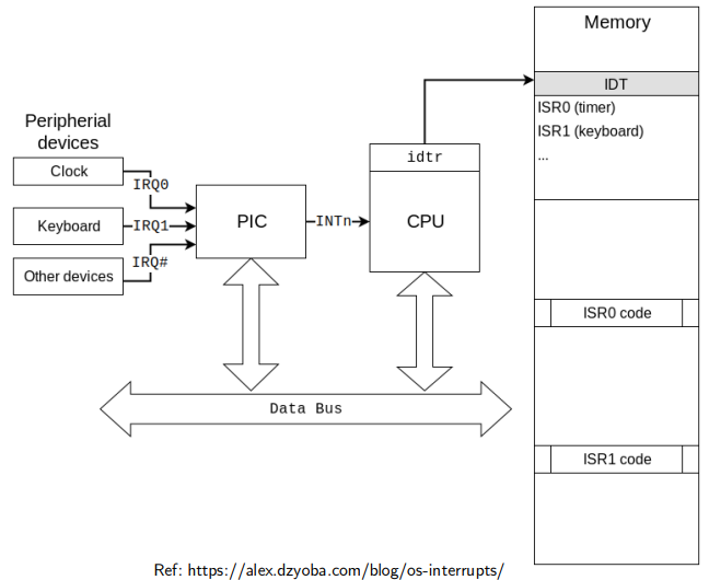 밑에 있는건 idtr register가 가르키는 IDT(Interrupt Descriptor Table)를 포함한 interrupt handling 과정