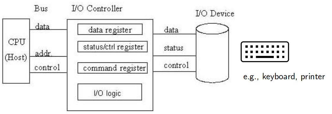 Controller : Host adapter로써 port, bus, device를 작동시킴