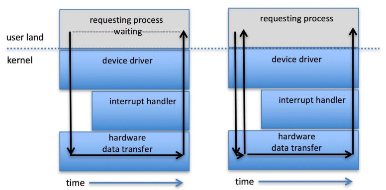 Asynchronous - I/O가 시행되는 동안 프로세스 실행