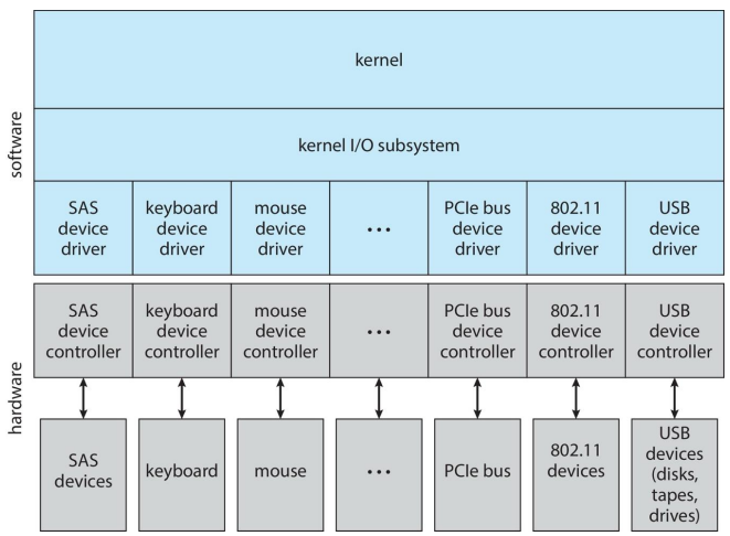 device driver layer는 커널에서 I/O controller 간의 차이를 감춤