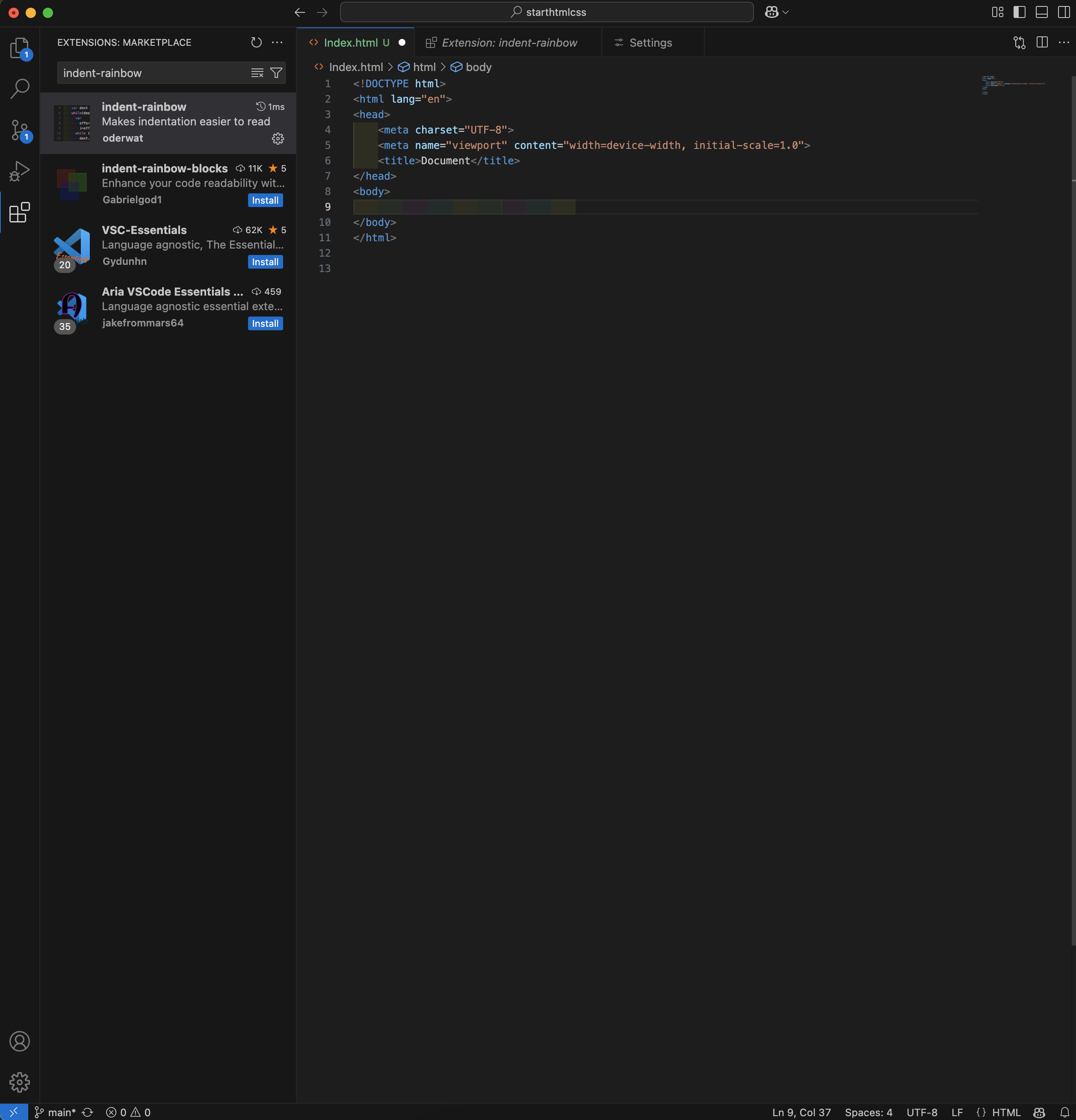 이제야 설치할 extension이 나왔다. Indent-rainbow인데 이 확장프로그램은 tab라인을 컬러화하여 구분하기 쉽게 만들어준다.