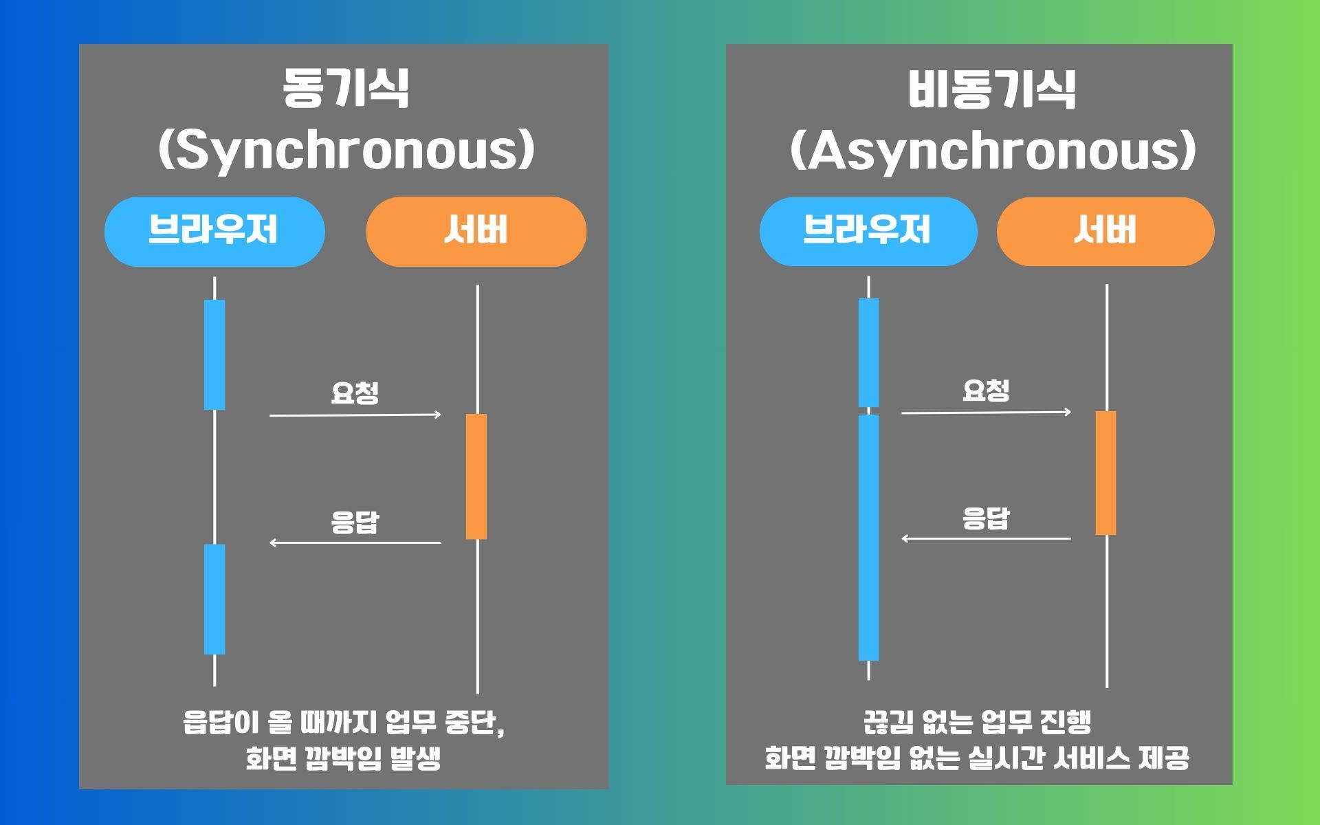 비동기를 사용함으로써 최종 작업 시간을 줄일 수 있다는 장점을 가지고 있습니다.