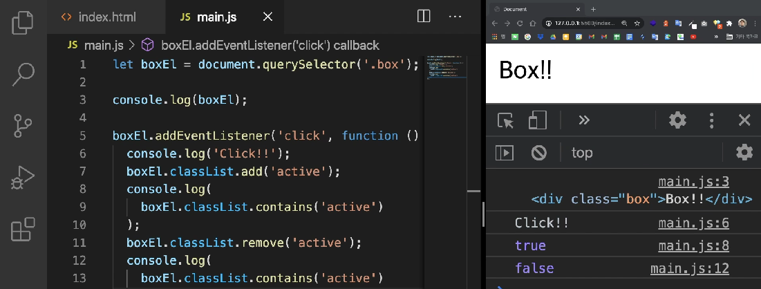 <script src="./main.js"> </script> 를 원하는 정보의 아래에 두는 방법1 (비추천)