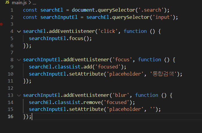 - 그리고 돋보기 아이콘을 눌러도 반응할 수 있도록 JS를 사용한다.