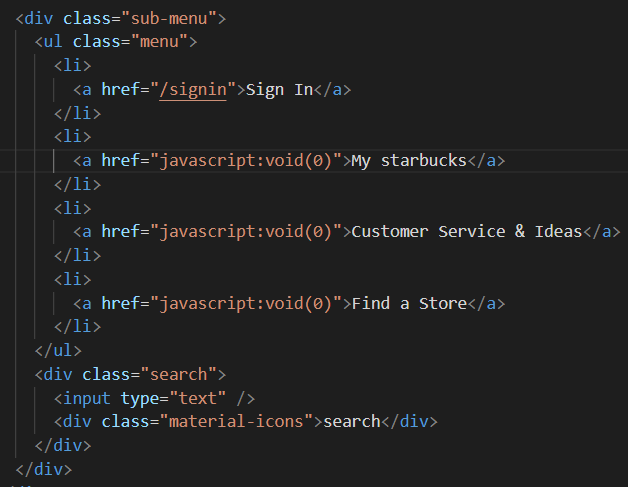 - ul과 li 태그를 이용하여 서브메뉴 요소들을 만든다.