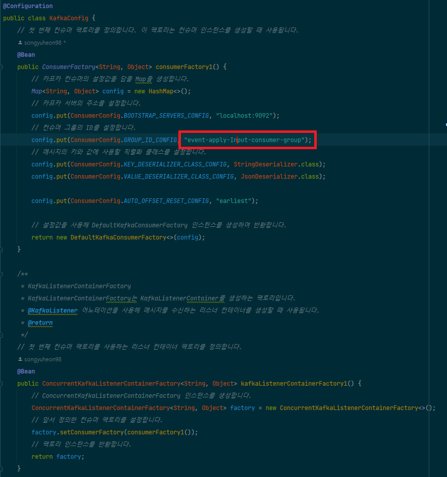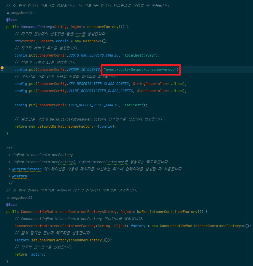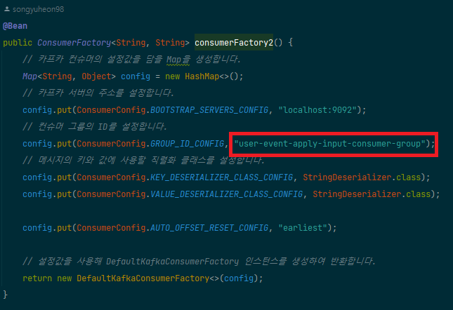 현재는 로컬에서 테스트를 하기에 localhost로 컨슈머와 프로듀서를 설정하였습니다.