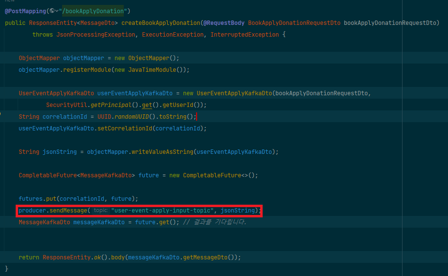 먼저 클라이언트에서 요청을 보내는 것을 kafka 서버로 보낸는 것부터 구현하겠습니다.