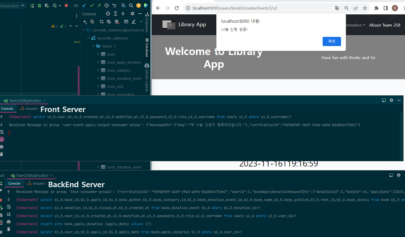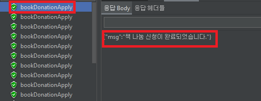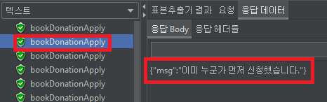 오류가 발생처음 신청한 딱 하나의 책 만이 신청에 성공하고 나머지는 신청이 거부되었습니다.