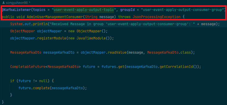 토픽으로부터 메시지를 받아 처리하는 도중 List<UserResponseDto>