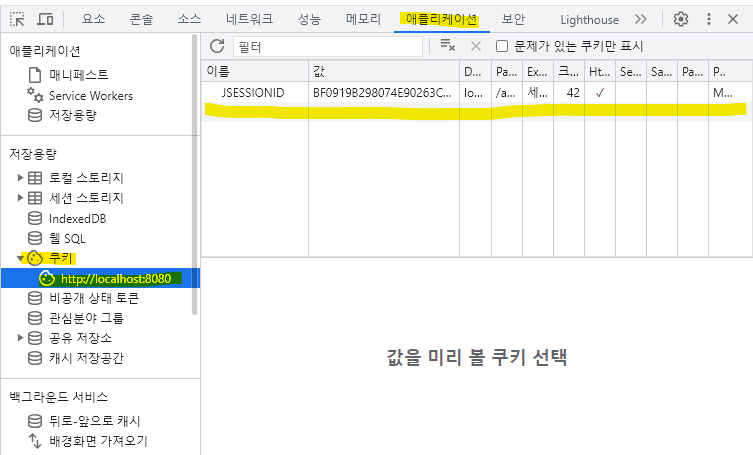 개발자도구 > 애플리케이션 > 쿠키 > 사이트
