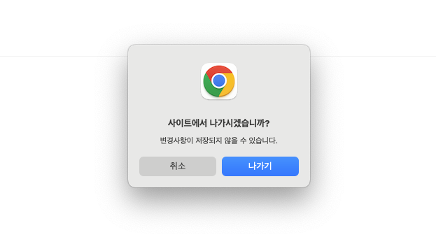 여기서 말하는 더티 체크란 블로그 글과 같이 작성 및 수정이 가능한 페이지에서 글을 작성하는 중에 사용자의 실수로 페이지를 이탈하려는 경우 막아주는 최소한의 안전장치이다.