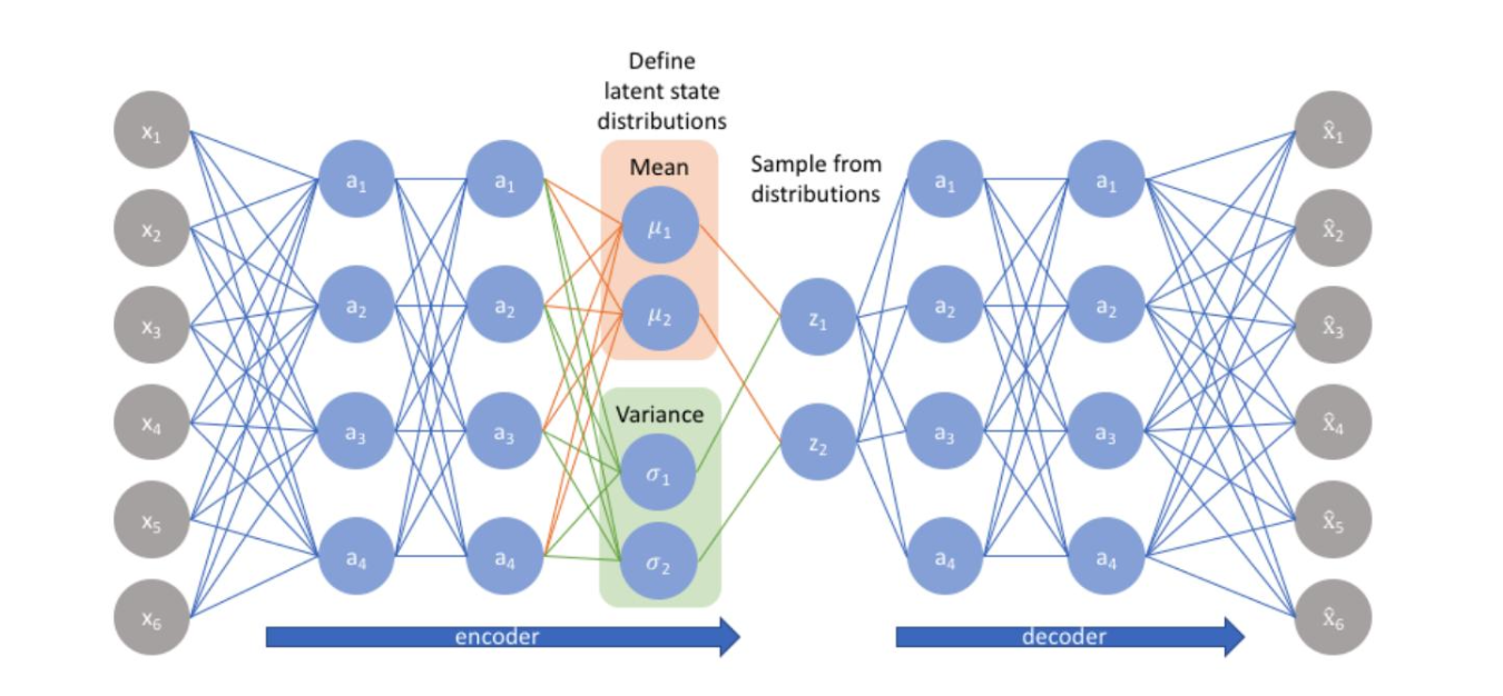 → 이 Q(z∣X)는 보통 정규분포처럼 다루기 쉬운 분포로 가정하고, 인코더가 X를 입력받아 z의 평균과 분산을 출력하게 만듦.