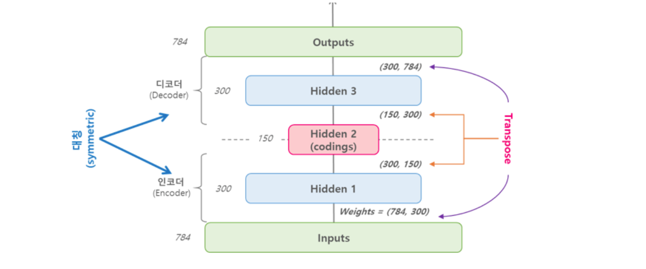 인코더와 디코더 부분에서 weight를 공유하거나 묶음. 디코더의 가중치를 인코더 가중치의 transpose로 한다.