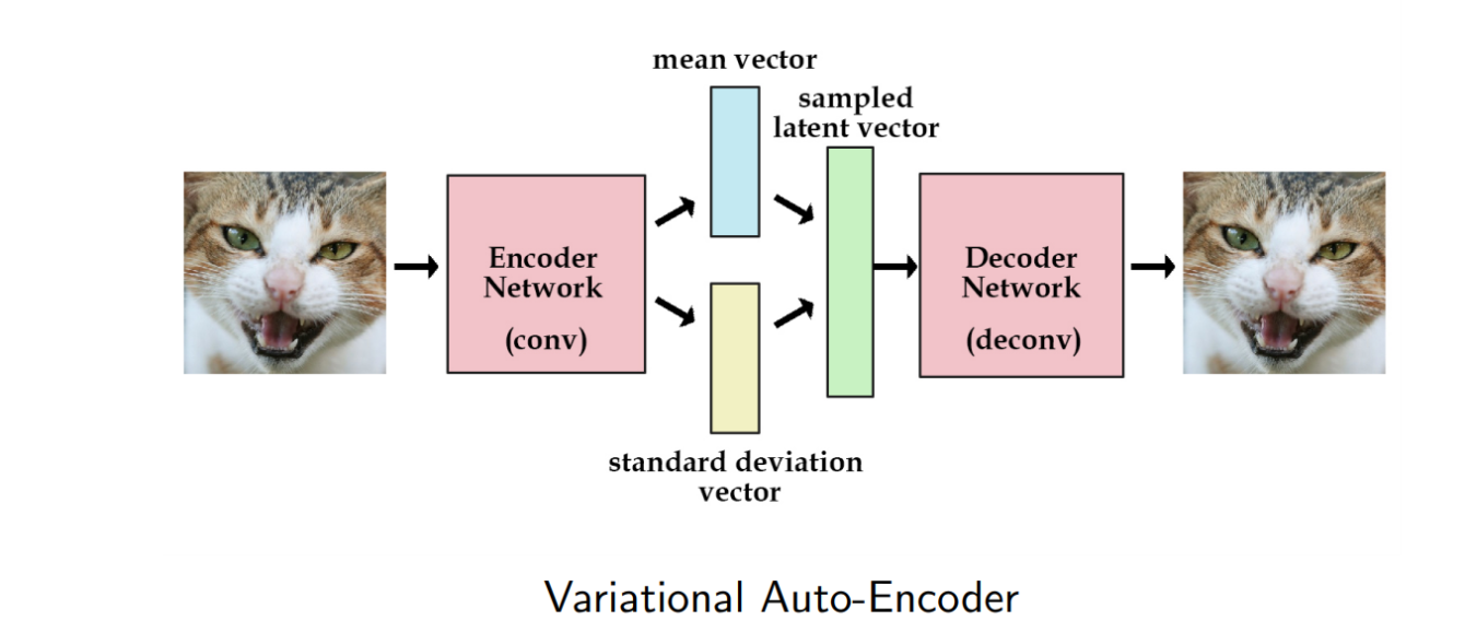 → 예를 들어, 고양이 사진 X가 주어지면, 그 사진을 요약하는 여러 가지 z (털 색, 귀 모양 등)가 있을 수 있고, 이 z는 확률적으로 결정됨.