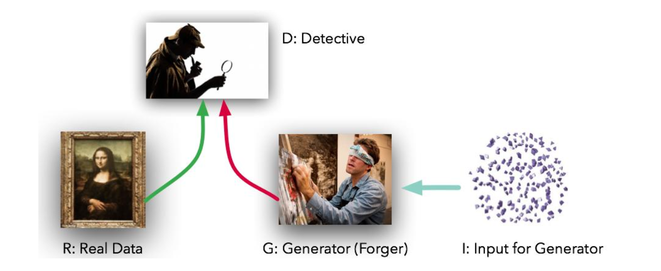 - 생성 모델 : 위조지폐를 만드는 팀이다.