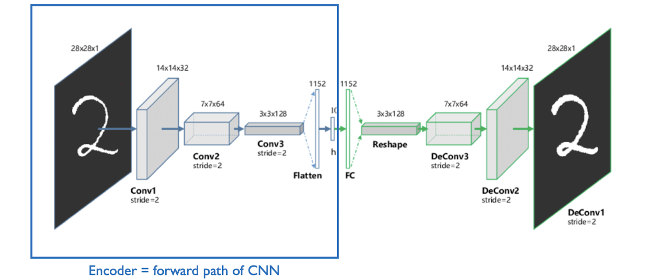공간적 구조가 있는 데이터를 효과적으로 처리하기 위해 고안된 오토인코더의 한 종류. 일반 오토인코더와 달리 합성곱 사용!