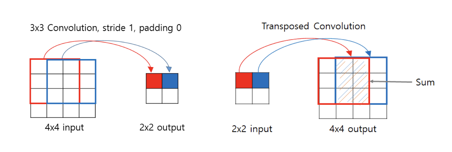 그림 보면 이해가 잘 됨, 그냥 Convolution 연산의 역연산이라고 생각하자. 겹치는 부분은 단순 sum