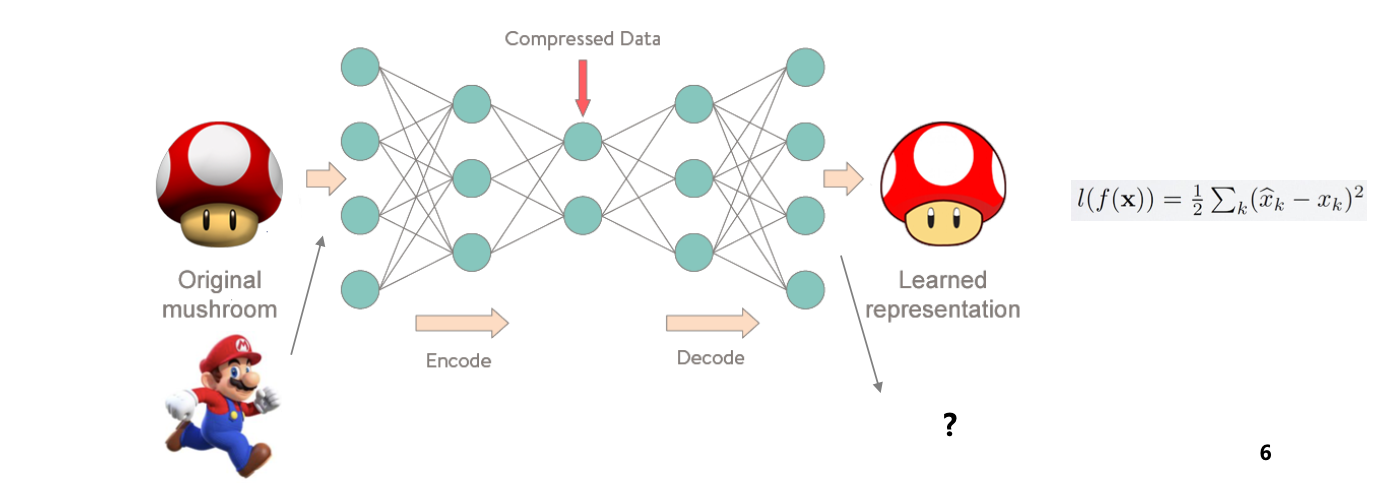 수집한 입력 데이터(원본 버섯)을 복원한 출력 데이터(복원 버섯) 사이의 오차를 의미. 해당 로스를 최소화하는 방향으로 네트워크가 학습된다.