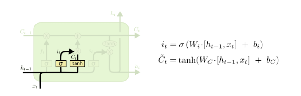it=σ(Wi⋅[ht−1,xt]+bi)