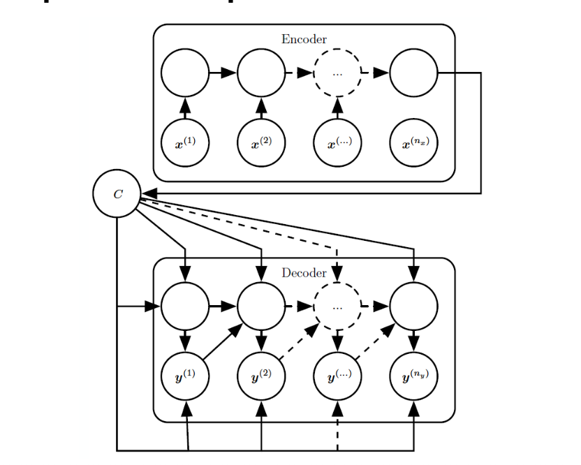 디코더는 c와 이전에 생성된 토큰들을 참고하여 다음 토큰을 예측한다.