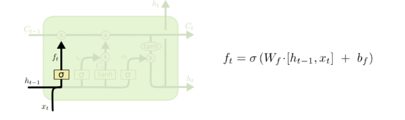 ft=σ(Wf⋅[ht−1,xt]+bf)