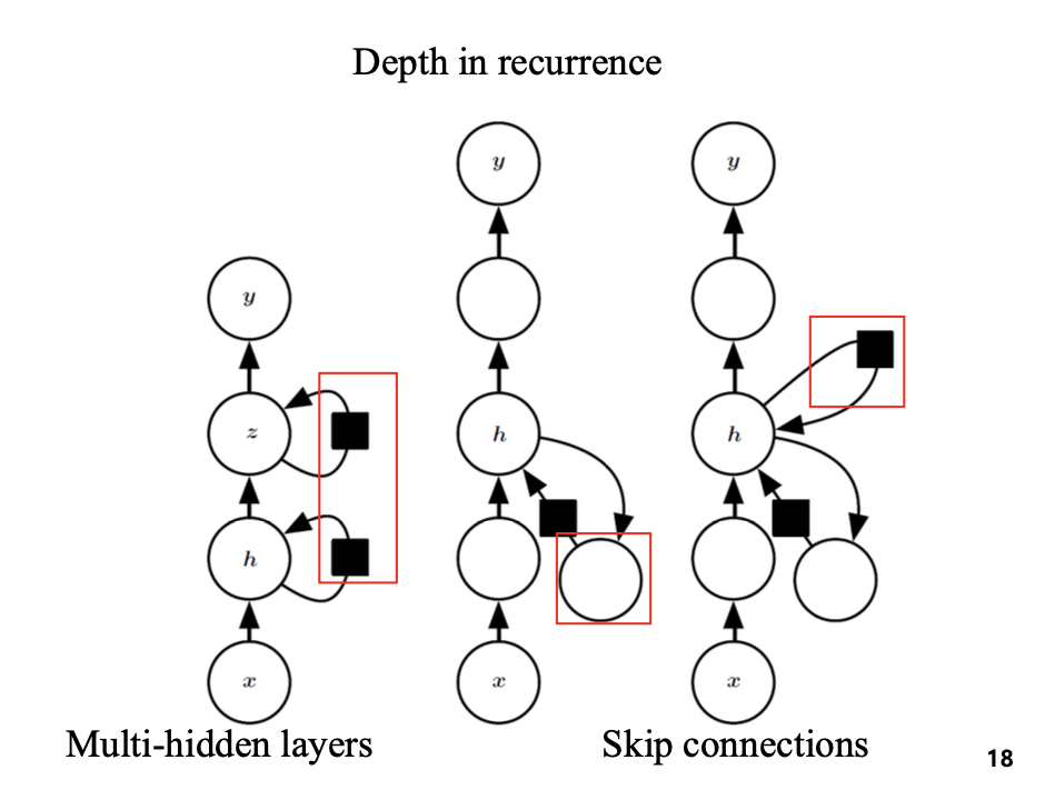 해당 그림처럼, 여러 은닉층을 쌓아 RNN의 깊이를 증가시킬 수 있다.
